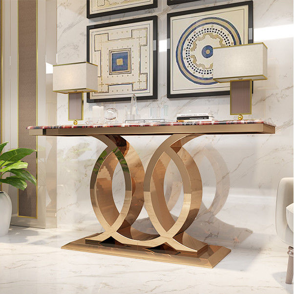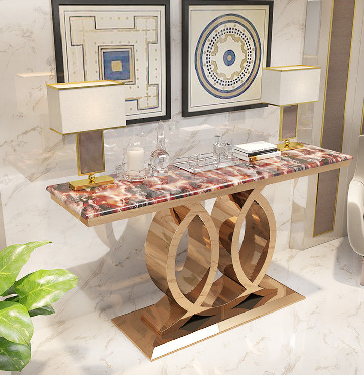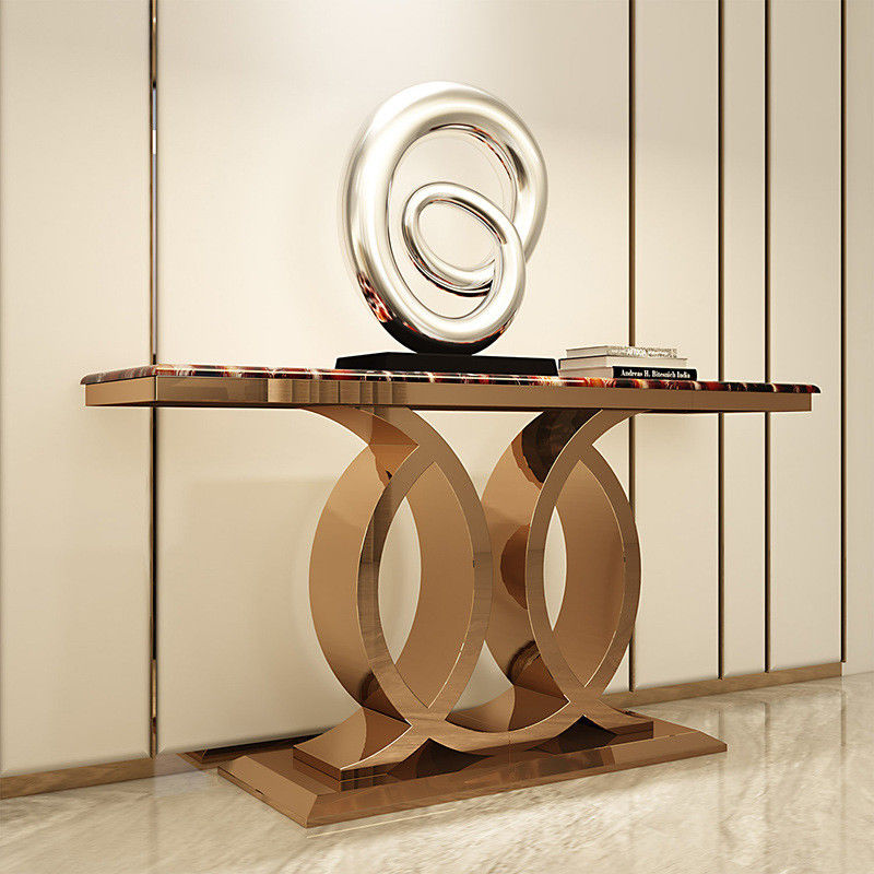Esta mesa de entrada moderna de tamanho médio é uma escolha ideal para a sua entrada. Feita de mármore de primeira qualidade e aço inoxidável, apresenta uma forma retangular com uma altura de 78cm.É perfeito para exibir itens decorativos e fornecer armazenamento extraCom seu estilo intemporal e artesanato excepcional, a mesa de consola certamente se tornará uma adição elegante a qualquer interior.
