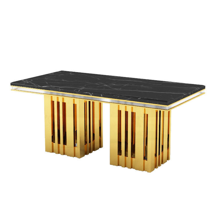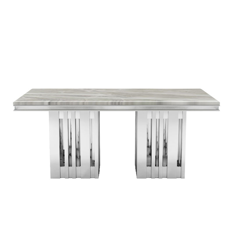 Esta mesa rectangular moderna é feita de aço inoxidável e é construída para durar.É projetado para ser uma peça de destaque em sua casaCom um prazo de entrega de 30 dias, você vai desfrutar da sua nova mesa de jantar em pouco tempo.