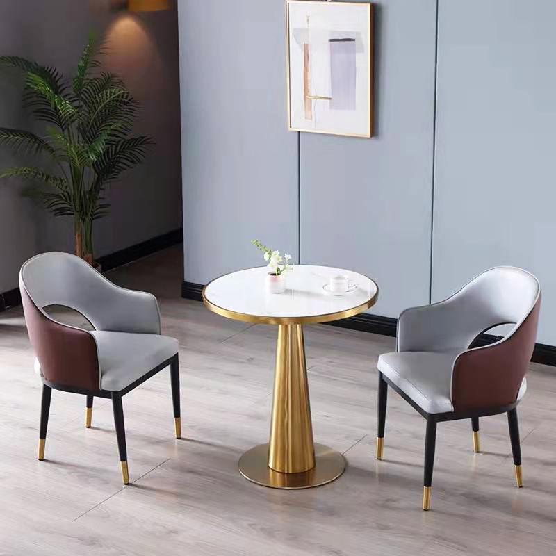 Outro grande uso para a mesa de negociação de aço inoxidável SEDIA é em lojas de sobremesas e cafés.Sua forma redonda e a mesa de mármore fazem dele um lugar perfeito para os clientes desfrutarem de suas guloseimas e bebidas. The table's sturdy construction and easy assembly process make it a practical choice for these types of businesses that may need to move their furniture around frequently to accommodate different group sizes.