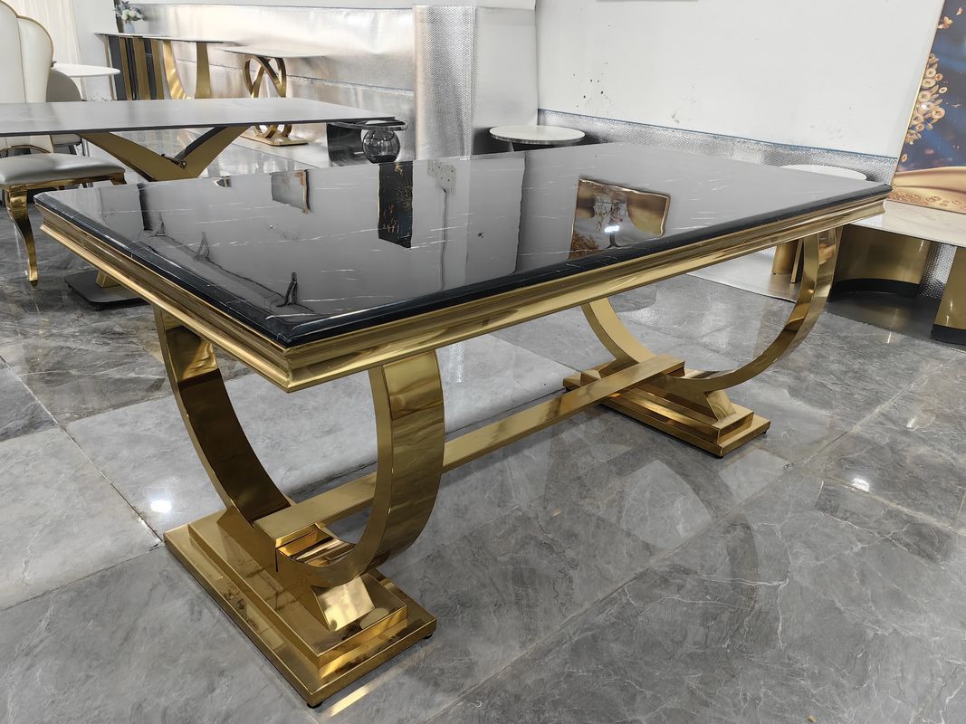 A base é construída em aço inoxidável de alta qualidade, proporcionando excelente estabilidade e durabilidade.criando um contraste impressionante que adiciona um toque de luxo a qualquer sala de jantarProjetada para casas contemporâneas, esta mesa de jantar não é apenas uma peça central elegante, mas também construída para resistir ao teste do tempo, oferecendo beleza e praticidade.